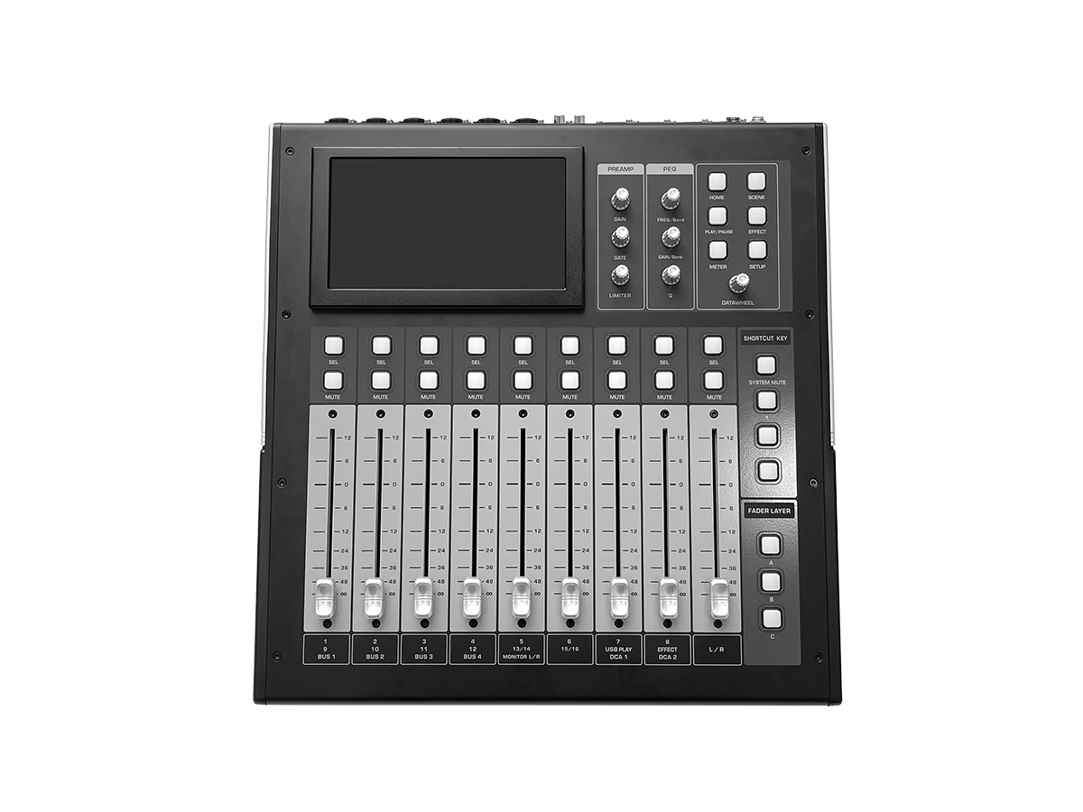12、每個輸入通道具有4段參數(shù)均衡、噪聲門、反饋抑制器、高低通、壓縮、反相