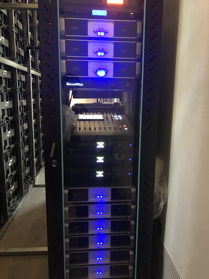 12只6.5寸線性音柱搭配6臺(tái)2通道400W功放,構(gòu)成主擴(kuò)聲系統(tǒng),確保聲場(chǎng)均勻覆蓋;